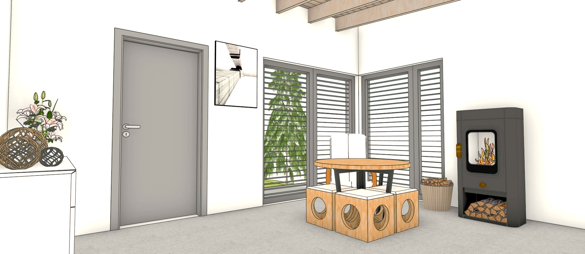 Pro lepší představu umíme zpracovat 3D studii a tím přiblížit zákazníkovi reálný pohled na svůj krb či kamna v místě instalace.