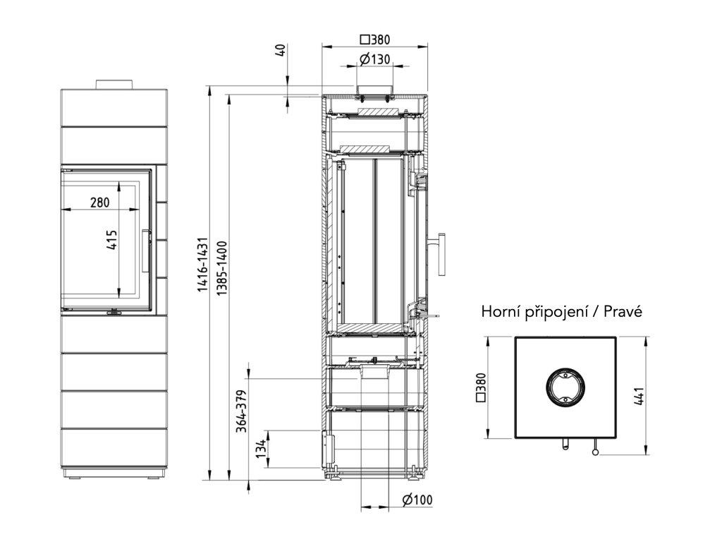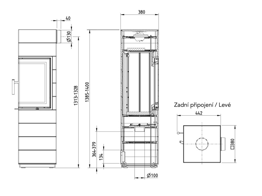 Do objednávky uveďte variantu připojení na komín (shora nebo zezadu). Hrdlo je nainstalováno rovnou z výroby a nelze to později změnit.